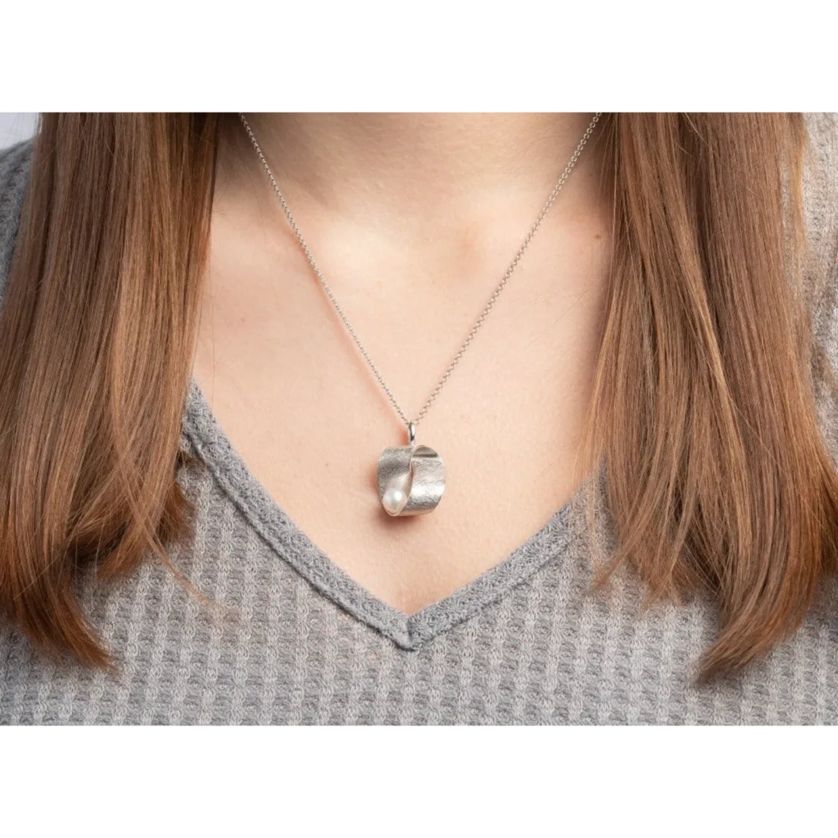 925/- hänge inkl. rund ankarkedja, gp matt, pärla 1,41ct