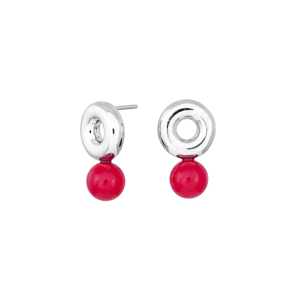 Halsband med rött guldbjörnshänge, hjärta och pärla, pläterat | Guld | 40-45 cm
