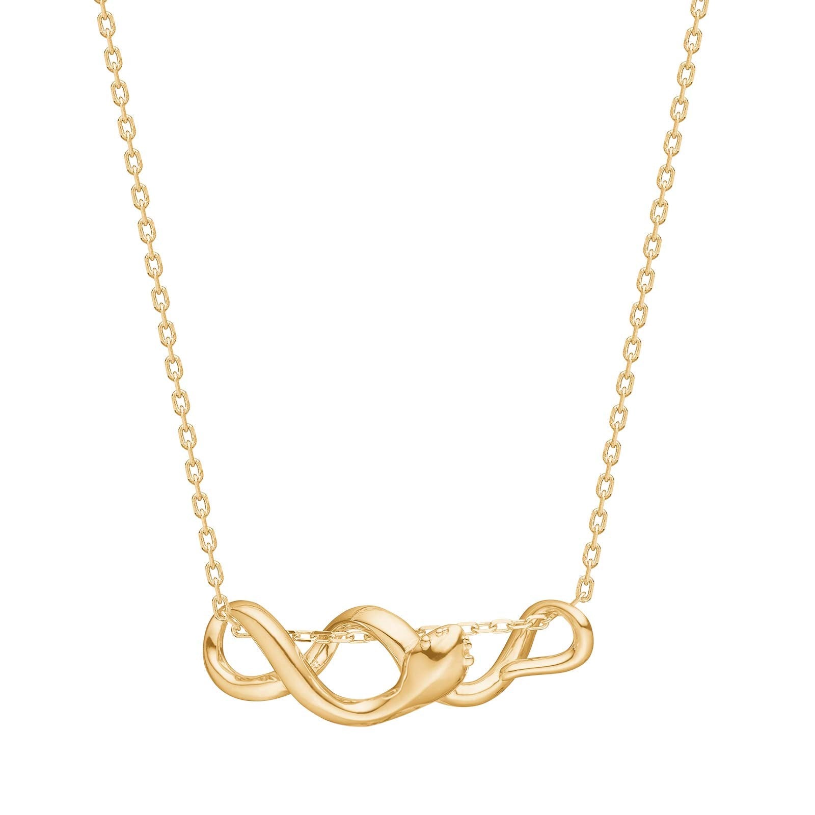Detta är ett förgyllt halsband för damer i silver, från brandserien Serpens52. Halsbandet har formen av en orm, har en blank yta och är ett halsband med hänge. Kedjans längd är 42 cm.