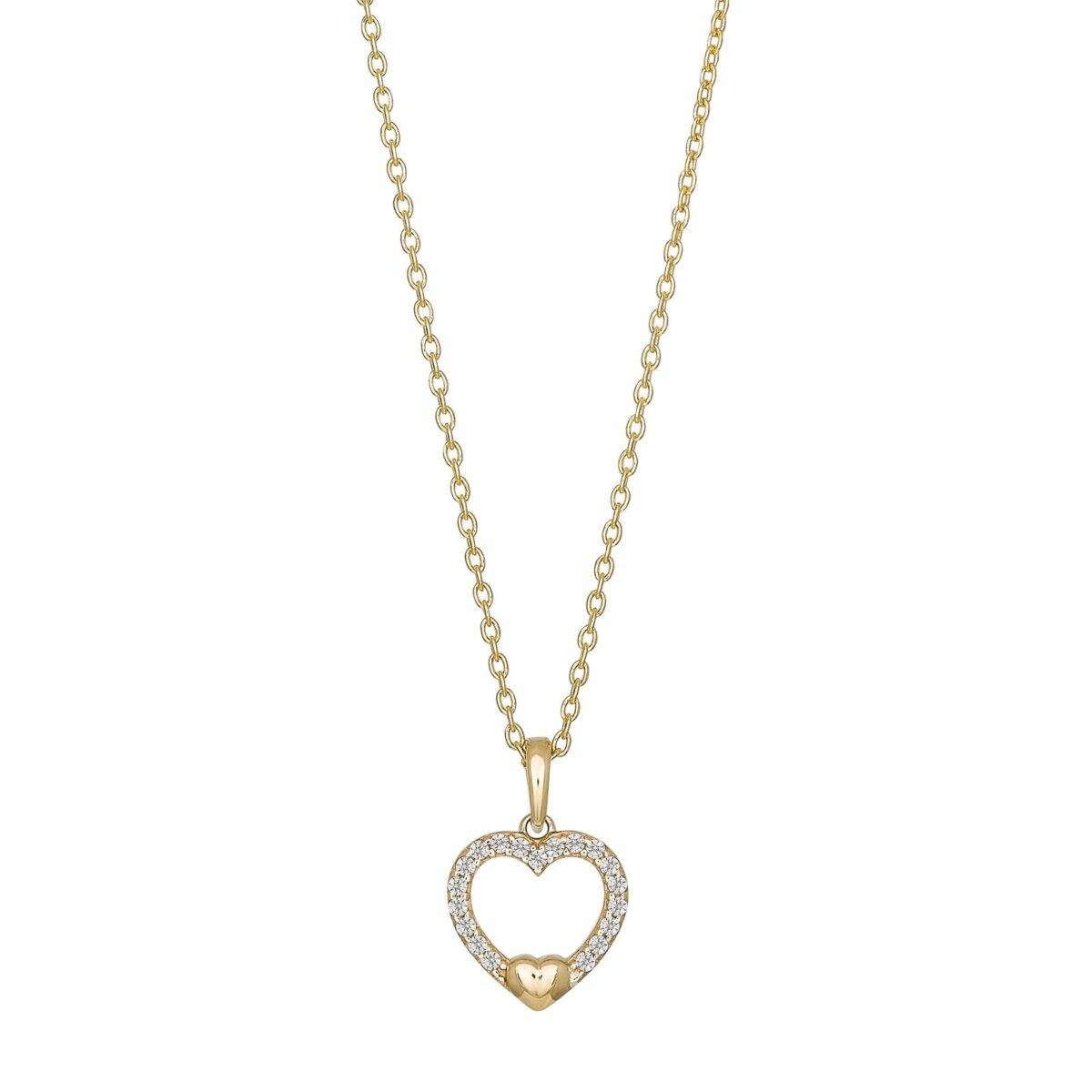 Hjärthänge i 8 karat guld med Zirkonia inkl. guldpläterat silver
